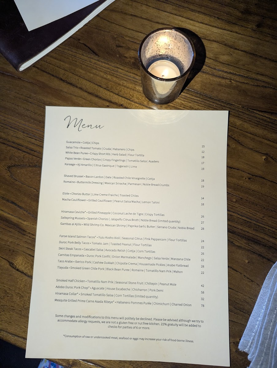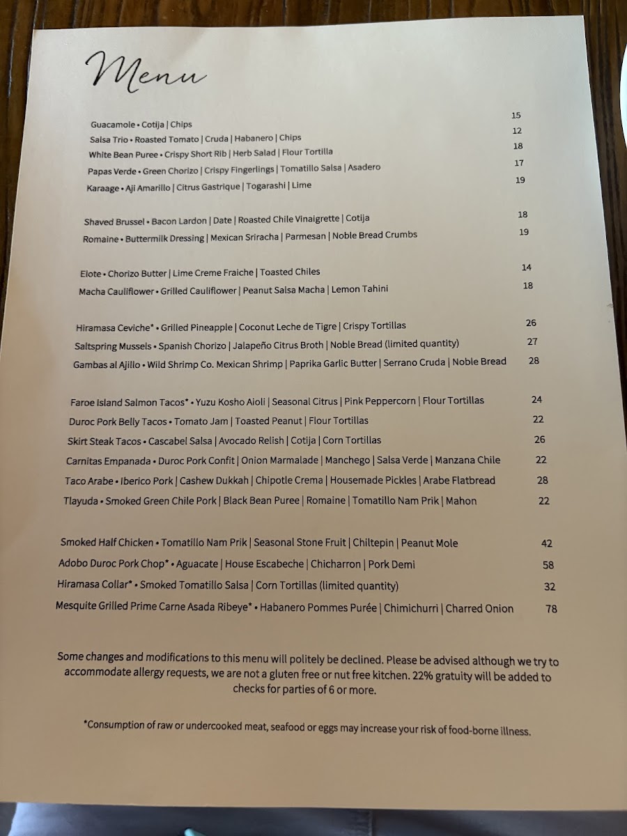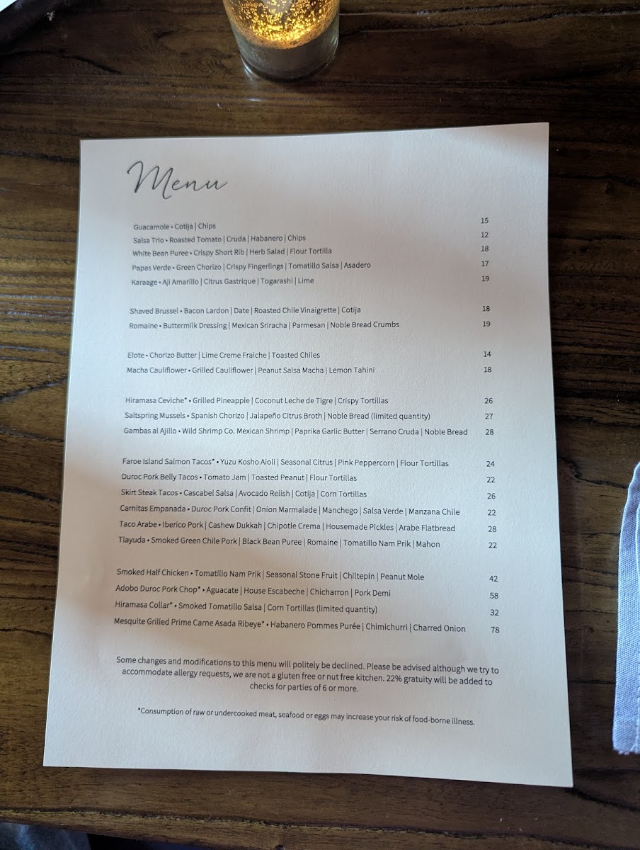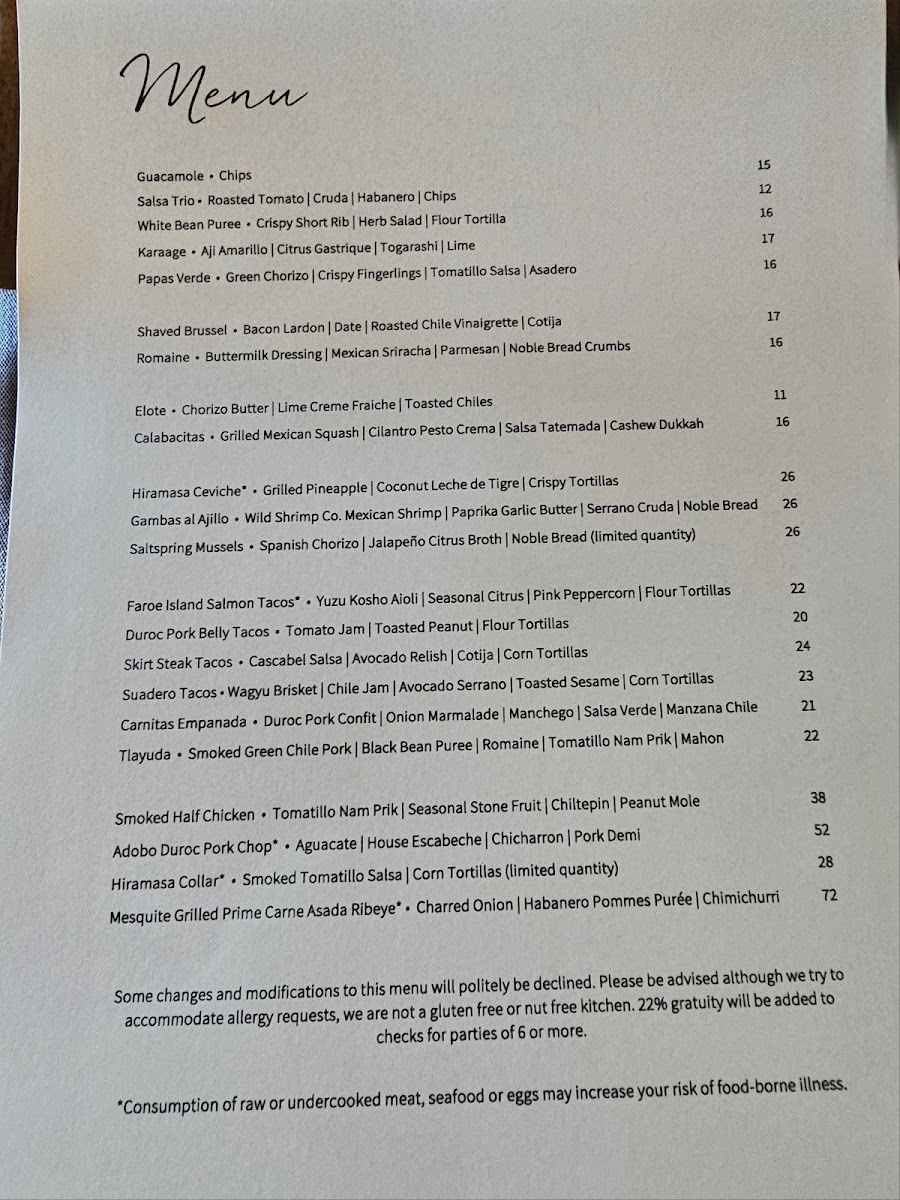 Two Tacos | Faroe Island Salmon | Yuzu Kosho Aioli | Seasonal Citrus | Pink Peppercorn | Flour Tortillas *Dairy Free Available Modifications: -Gluten Free (Sub Corn Tortillas)